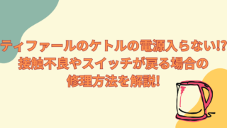 調理家電・キッチン家電 ティファールのケトルの電源入らない!?接触不良やスイッチが戻る場合の修理方法を解説!スイッチがスカスカでも自力で直せる!? ティファールのケトルが電源入らないと困ったときは接触不良やセンサーの問題などが原因です。「電源入らない」と困ったときはティファールのケトルの修理に挑戦してみましょう。スイッチが戻る場合やスイッチがスカスカでも自力で直せる方法を解説します。 2024.12.08 調理家電・キッチン家電